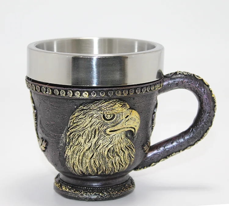 3D Kabartmalı Kartal Büstü Paslanmaz Çelik Kupa Bardak Alk4480