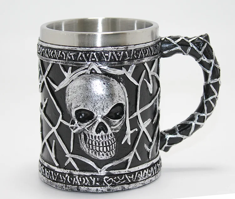Gotik Kurukafa 3D Kabartmalı Paslanmaz Çelik Kupa Bardak Alk4380