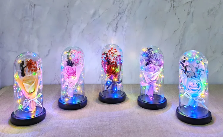 Işıklı Müzkli Dekoratif Cam Fanus İçinde Gül Alk5005