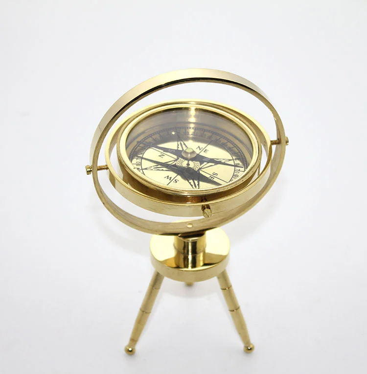 Şık pirinç masa üstü pusula. Dekorasyon ve navigasyon için ideal. Toptan ve perakende satış mevcut.