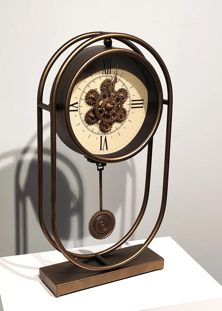 Özel tasarım metal çarklı masa saati. Dekoratif ve fonksiyonel. Toptan satış mevcut. Hemen sipariş verin!