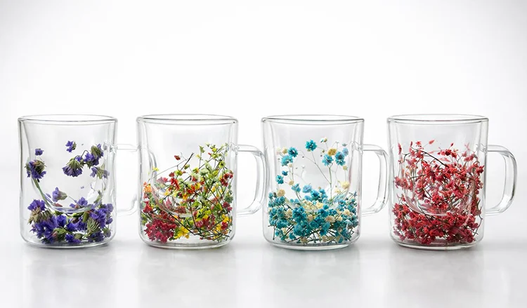 Çift Camlı Çiçekli Kupa Bardak Alk4468