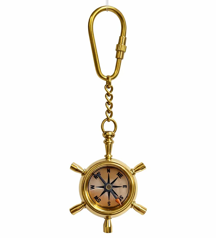 Pirinç Dümenli Pusula Anahtarlık 16123A