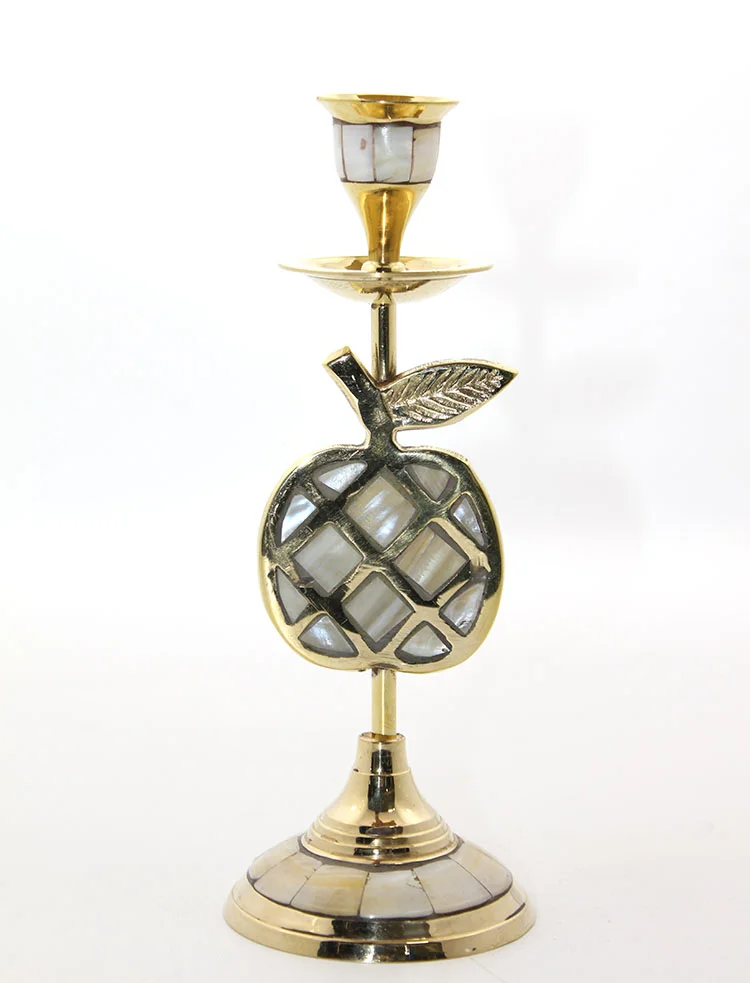 Pirinç Sedefli Tekli Şamdan 1636