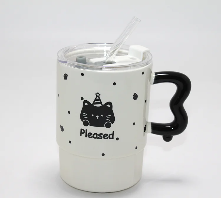 Sevimli Ayı Figürlü Pipetli Kapaklı Porselen Kupa Bardak Alk5041