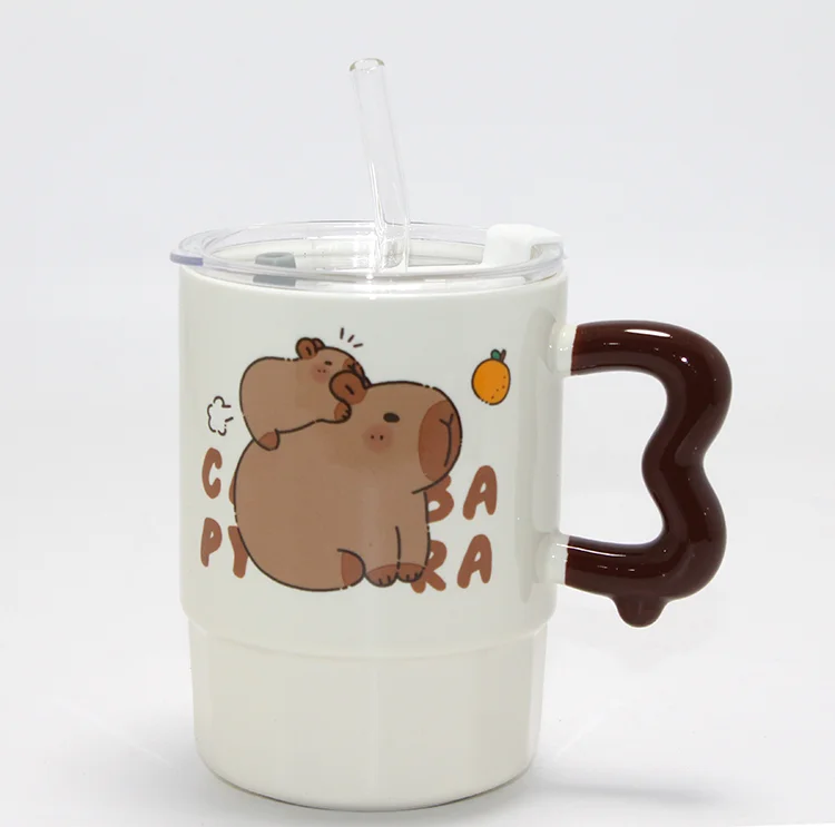 Sevimli Kapibara Capybara Figürlü Kapaklı Porselen Kupa Bardak Alk5040