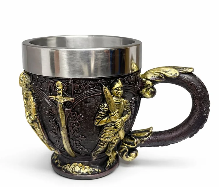 Şövalye Kabartmalı 3D Paslanmaz Çelik Kupa Bardak Alk4476