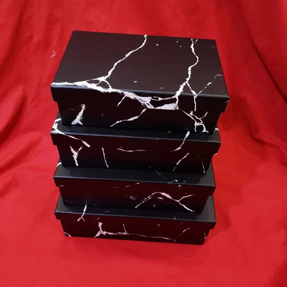 Toptan 4'lü Siyah Mermer Desenli Hediye Kutusu