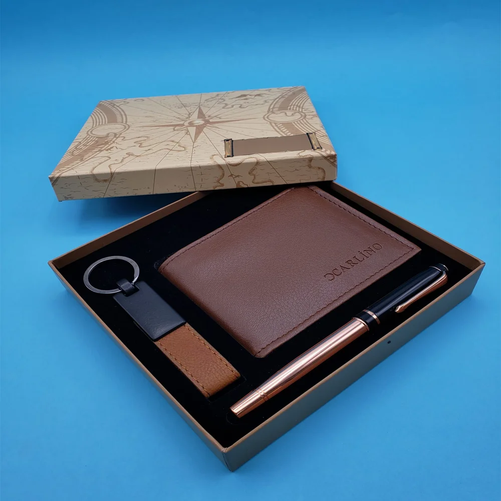 Toptan Bakır Metal Kalem Taba Cüzdan ve Anahtarlık Set