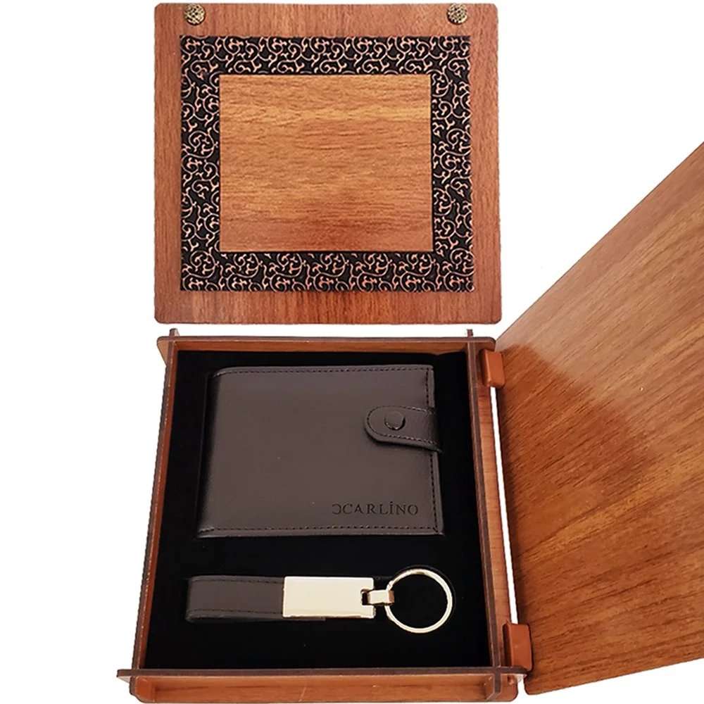 Toptan Deri Ahşap Kutulu Cüzdan ve Anahtarlık Set