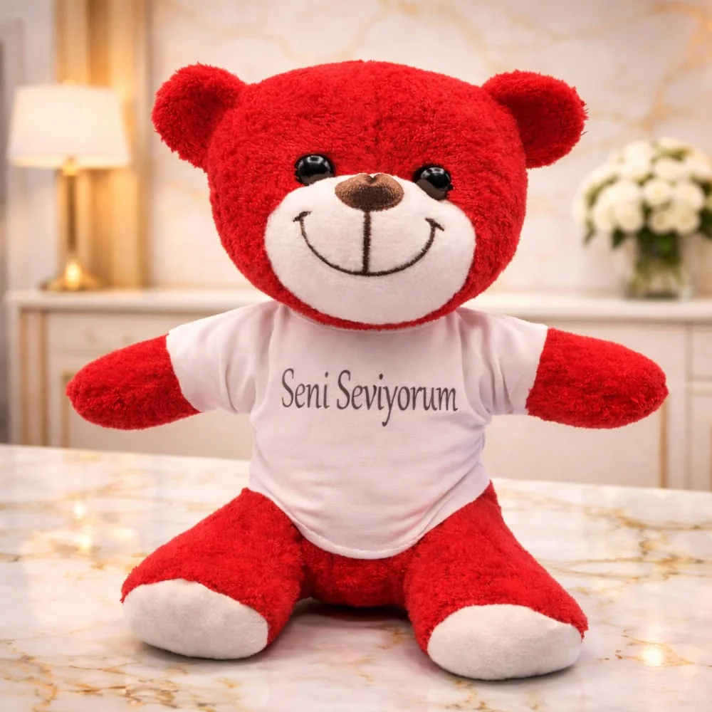 Toptan Kırmızı Ayıcık Seni Seviyorum Tişörtlü