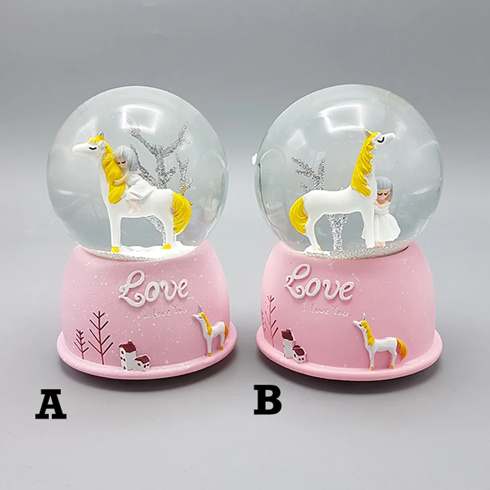 Toptan Mini Işıklı Sevimli Atlı Kız Kar Küresi