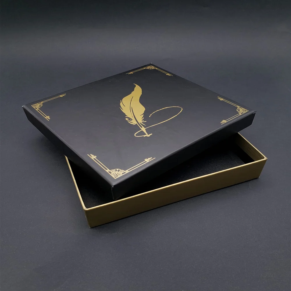 Toptan Özel Tasarım Siyah Kapaklı Tüylü Kalem Motifli Kutu