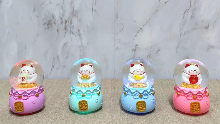 Şans Kedisi Işıklı Kar Küresi Alk4914