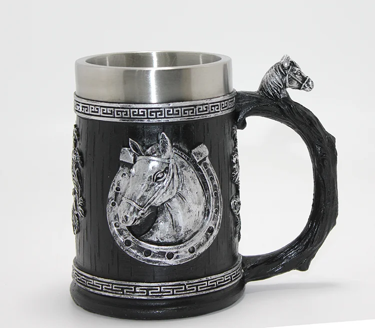 3D Kabartmalı At Büstü Paslanmaz Çelik Kupa Bardak Alk4478