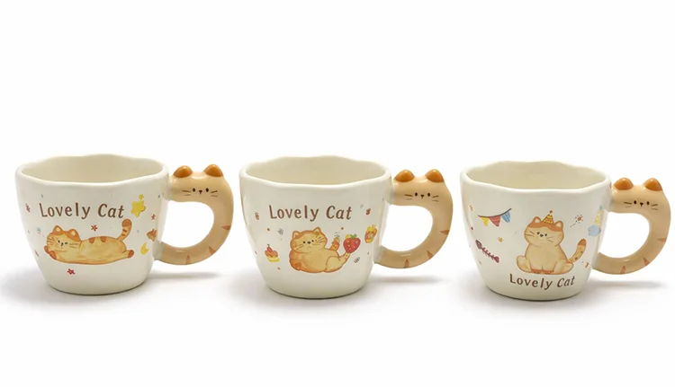 3D Kedi Tasarımlı Kabartmalı Kupa Bardak Alk5030